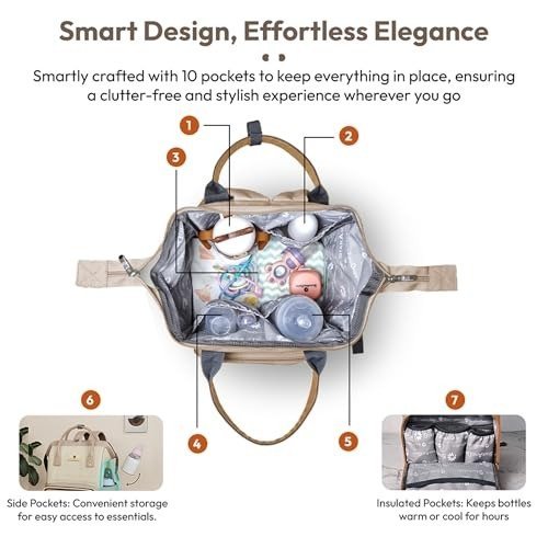 StarAndDaisy Baby Bag for Mother Travel/Maternity Bag with Multi-Compartments, Insulated Bottle Pockets, Waterproof ? Brown – Fast Shipping to USA & Canada
