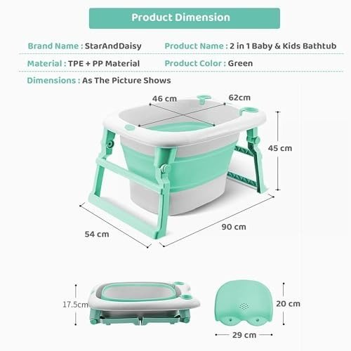 StarAndDaisy Baby Bath tub for 0 to 5 Years, 2-in-1 Bathub for Kids, Foldable tub with Cushion and Bathing Chair for Boys & Girls, Fast Drainage & Space Saving Design -Green – Fast Shipping to USA & Canada