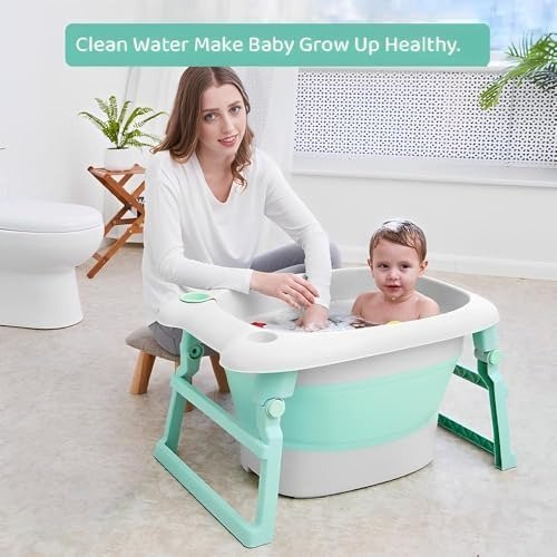 - Bid farewell to mess: Our collapsible tub is a must-have for parents who value space. It conveniently folds flat when not needed, allowing for effortless storage and maximizing your bathroom?s available room.