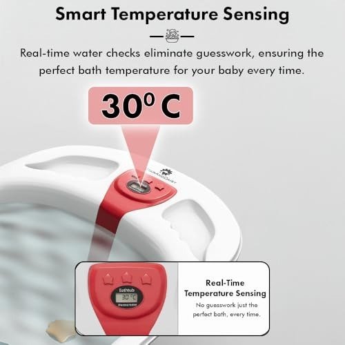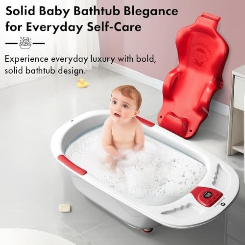 StarAndDaisy Baby Bath tub for 0 to 5 Years with Temperature Sensor/Bath tub for Kids 0-3 Years for Kids with Anti-Slip Legs/Bath tub for Baby with Baby Bather Without Wheel(White-Red) – Fast Shipping to USA & Canada