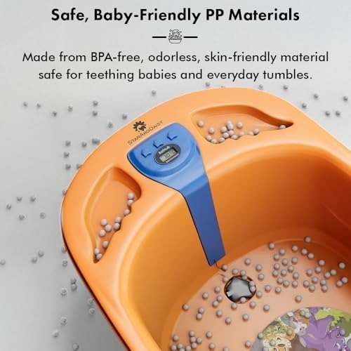 StarAndDaisy Baby Bath tub for 0 to 5 Years with Temperature Sensor/Bath Tub for Kids with Anti-Slip Legs/Bathtub for Baby with Baby Bather -Without Wheel(Orange-Blue) – Fast Shipping to USA & Canada