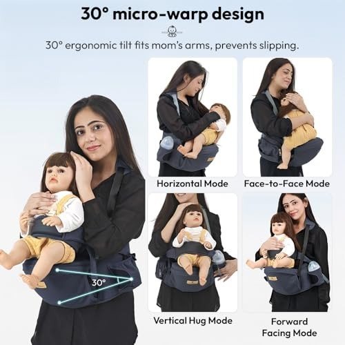 - Ergonomic Hip Seat Baby Carrier – Featuring a broad, cushioned hip seat, this carrier balances your childs weight evenly, minimizing strain on your back and waist for safe, comfortable wear over extended periods.