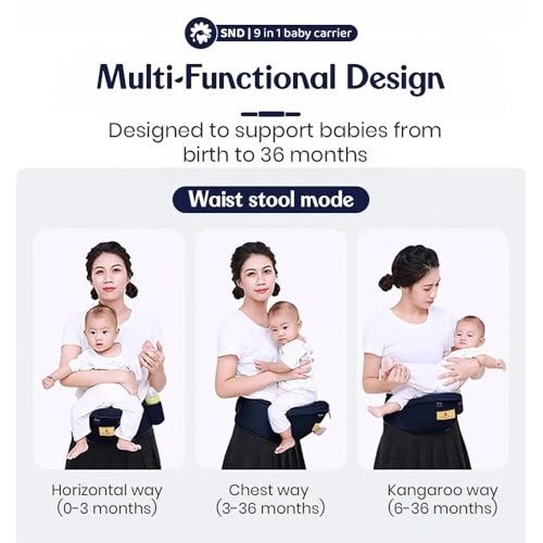 - Nine Versatile Carrying Options Select from front, back, or hip positions to accommodate your baby’s development and your own comfort needs.