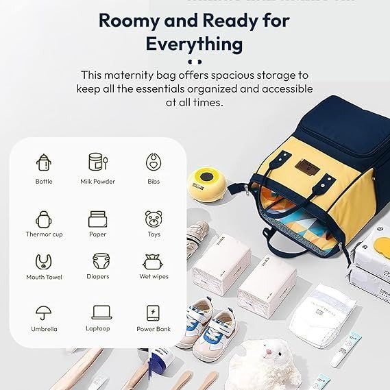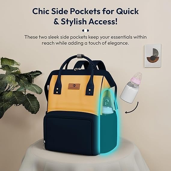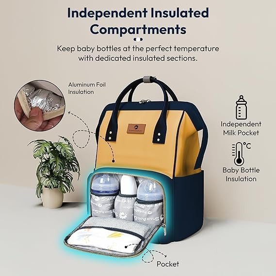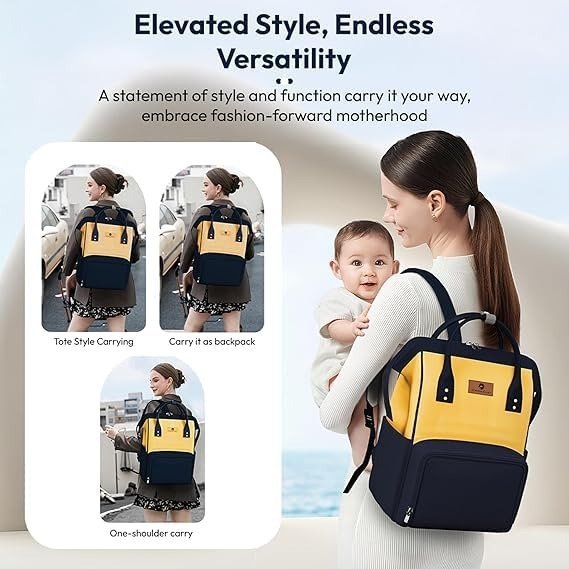StarAndDaisy Baby diaper Bag for Mother Travel/Maternity Bag with Multi-Compartments, Insulated Bottle Pockets, Waterproof ? (Dark Blue Yellow) – Fast Shipping to USA & Canada