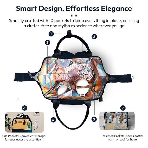- Three Insulated Front Bottle Compartments: Crafted to maintain your baby?s bottles at the ideal temperature for hours. These thermal pockets are ideal for transporting milk, water, or juice when you?re out and about.
