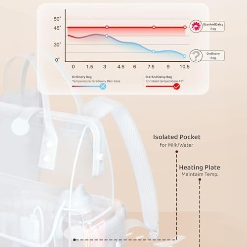 - Temperature-Regulated Storage: The insulated front compartment of this diaper bag ensures your baby’s bottles and snacks remain at the ideal temperature, so you can rely on having your little one’s meals perfectly prepared whenever needed.