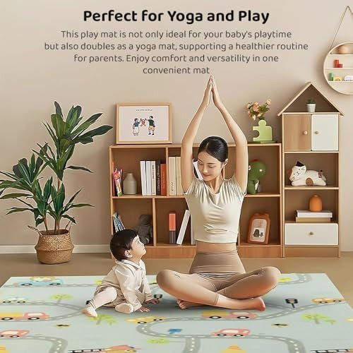 - SPACIOUS & DOUBLE-SIDED – This generously sized, single-piece play mat provides ample space for your baby to crawl and explore safely, supporting their developmental milestones by cushioning against bumps and falls. Plus, with adorable designs on both sides, your little one will love engaging in cheerful tummy time!