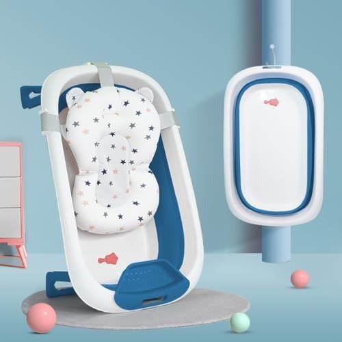 StarAndDaisy Bath Tub for Baby 0-5 Years/Foldable Bath tub for Kids 0-3 Years with Cushion, Space Saving Design, Newborn Baby Folding Bathing Tub Girls & Boys with Soap Tray, Easy to Store- (Blue) – Fast Shipping to USA & Canada