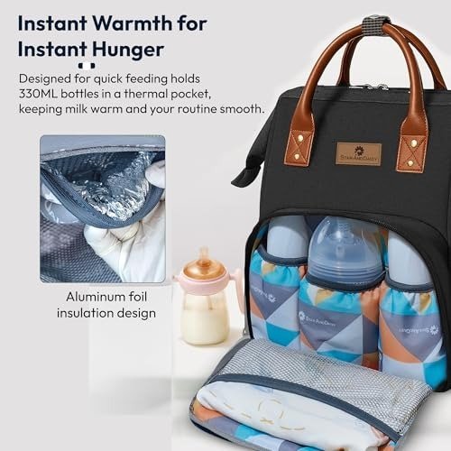 StarAndDaisy Diaper Backpack For Mothers For Travel/Diaper Bags For Mom With Multi Compartments, Insulated Bottle Pockets, Waterproof, Ultra Soft Oxford Fabric, 24Lt Capacity – Black – Fast Shipping to USA & Canada