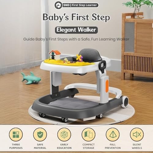 StarAndDaisy Elegant Baby Walker 6 to 18 Months/Walker for Kids Girl Boy with Anti Fall Brake Pads, 3 Speed Height Adjustment, Multi-Level Seat Adjustment, Recreational Music Toy Bar (Grey & Yellow) – Fast Shipping to USA & Canada