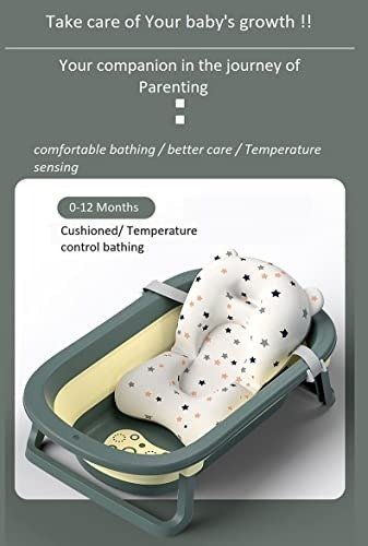 StarAndDaisy Foldable Infant Bath Tub with Smart Temperature Indication Meter, Collapsible Newborn Toddler Folding Bathing Support Bathtub with Soft Cushion for 0-3 Years Baby (Green) – Fast Shipping to USA & Canada