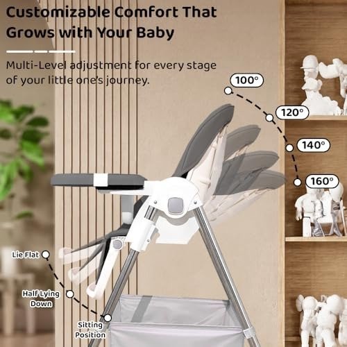 • Modify the backrest: It offers five distinct positions, allowing your baby to eat, play, or rest comfortably.
