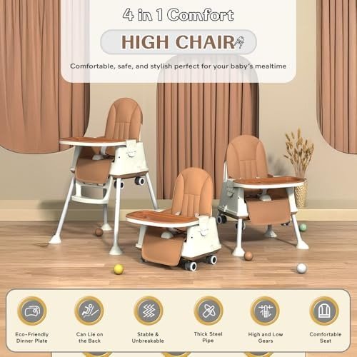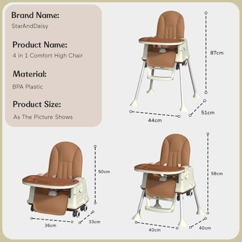 - 4-IN-1 MULTIFUNCTIONAL HIGH CHAIR: The StarAndDaisy High Chair for babies is designed to adapt to your child?s changing needs. This versatile chair easily transforms into four different seating options: 1. Padded High Chair, 2. Standard Chair, 3. Booster Seat, and 4. Wheeled Chair.