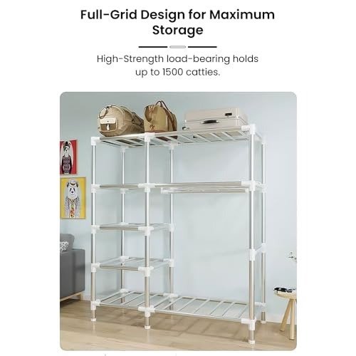 - 23mm Reinforced Steel Tubing: Constructed with a robust 23mm thickened steel frame, this foldable wardrobe delivers exceptional stability and durability, resisting bending or deformation over time. Its solid build ensures your clothing, accessories, and essentials remain neatly organized and securely stored.