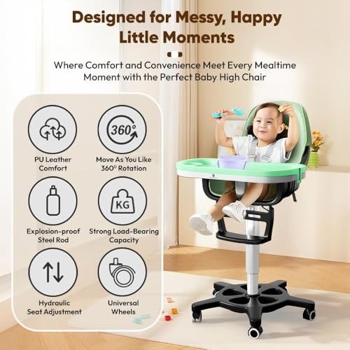 - Effortless Mobility with 360? Swivel Wheels – Equipped with wheels that rotate in every direction, this high chair allows you to smoothly glide it from room to room without the need for lifting. This feature adds extra convenience for parents during mealtime.