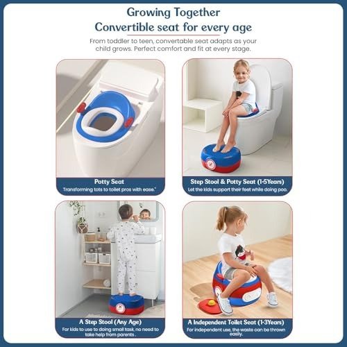 StarAndDaisy Plastic Potty Seat For Kids 1-5 Years / 3-In-1 Baby Toilet Training Seat With Anti-Skip Pads, Removable Potty Pot, Potty Training Seat For Baby & Kids. (Blue-Red) – Fast Shipping to USA & Canada