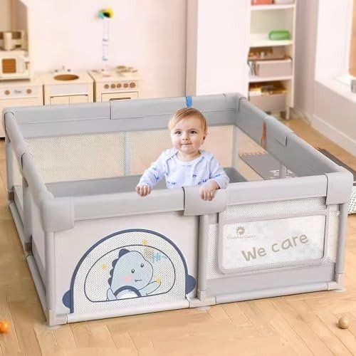 StarAndDaisy playpen for Babies, Portable Baby Activity Play Pen with Safety Lock, Play Gate Fence for Kids, Toddlers -Indoor Activity – (120 * 120 cm-Grey) – Fast Shipping to USA & Canada