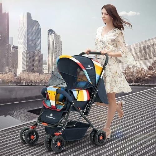 StarAndDaisy Stroller for Boy & Girl 0 to 3 Years / Baby Stroller with Lightweight / Foldable Pram for Baby with 3-Point Safety Harness, Adjustable Backrest, 360? Swivel Wheel, Reversible Handlebar, Extended Mosquito Net (Sigma) - Fast Shipping to USA & Canada