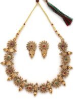 6 reviews for Sukkhi 18k Gold Red Green Choker Necklace with Earrings – Fast Shipping to USA & Canada