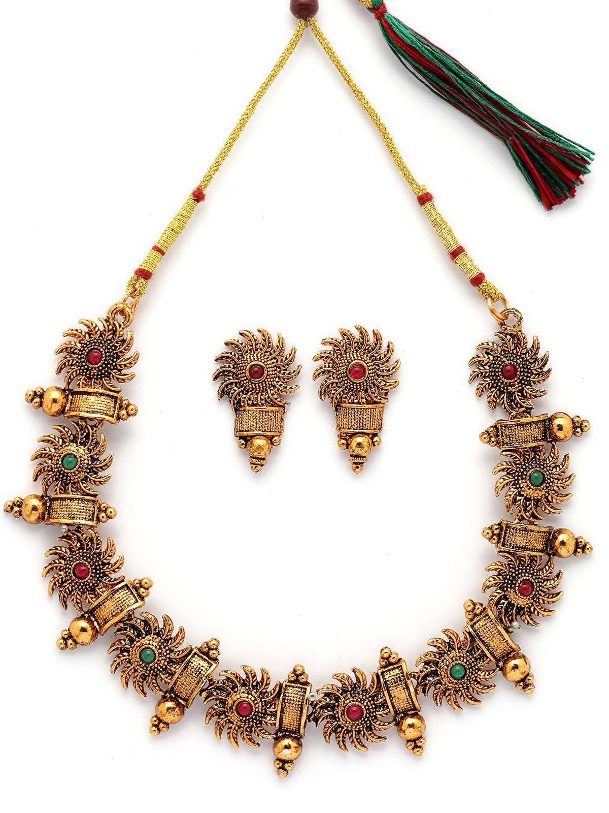 Sukkhi 18k Gold Red Green Choker Necklace with Earrings – Fast Shipping to USA & Canada