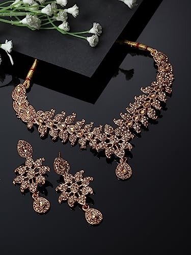 Sukkhi AD Stone Collar Necklace Set with Earrings – Fast Shipping to USA & Canada