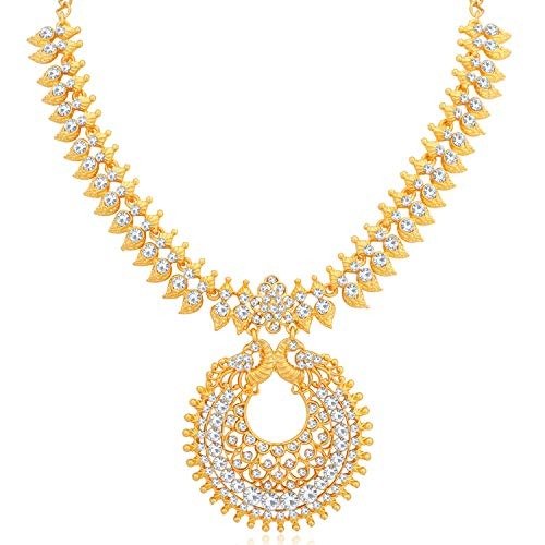 Introducing the Sukkhi ethnic gold-plated peacock necklace set designed for women. Women have a deep appreciation for jewelry, particularly artificial pieces that enhance their beauty. They adorn themselves with such accessories for various occasions, holding special significance during ring ceremonies, weddings, and festive celebrations. Additionally, these pieces can be worn on a daily basis. Create unforgettable moments with this exquisite collection. This jewelry showcases a distinctive, one-of-a-kind traditional design with an antique finish.