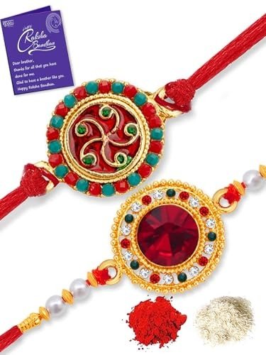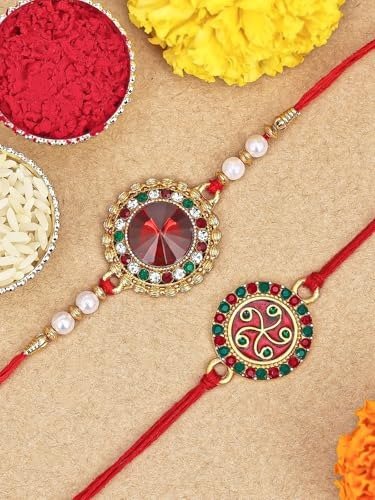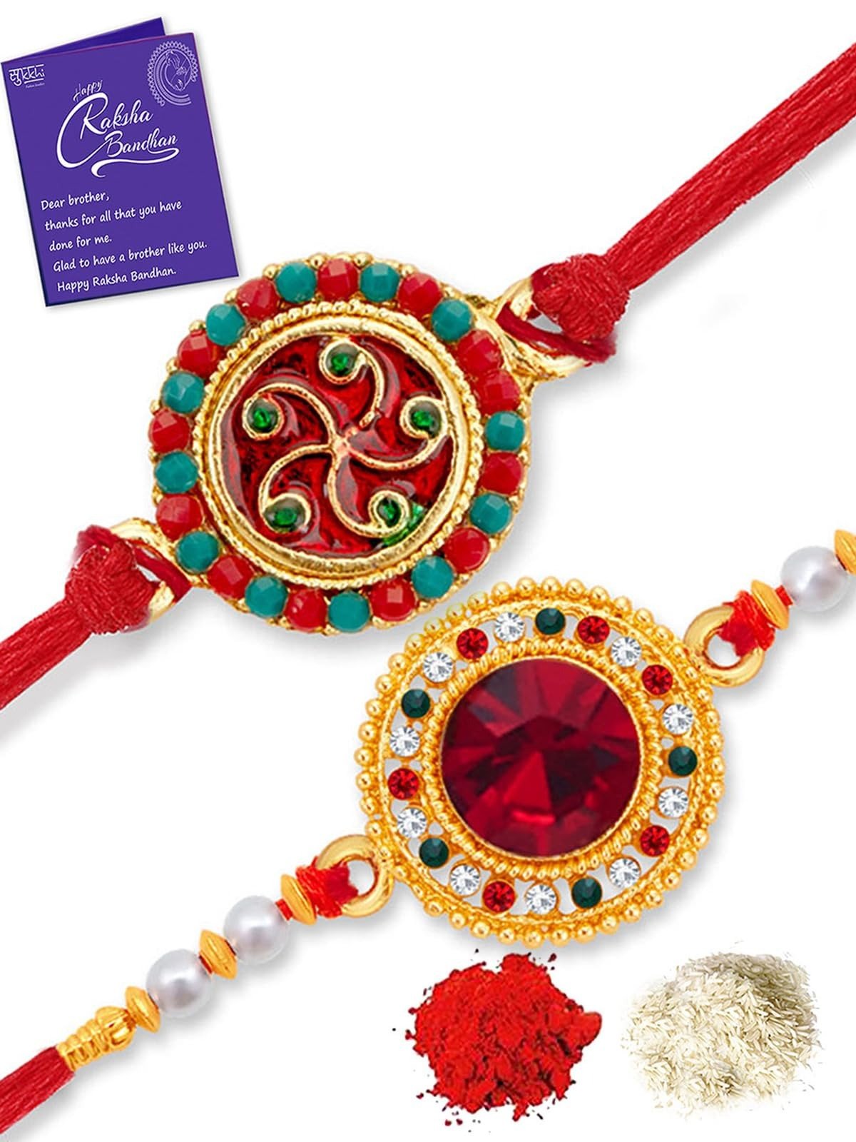 Sukkhi Lovely Kundan Rakhi Combo Set of 2 with Card – Fast Shipping to USA & Canada