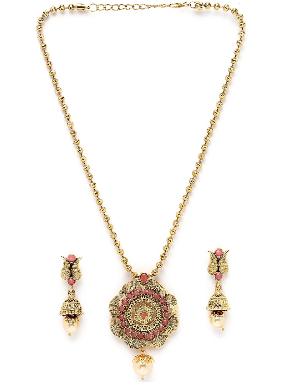 Sukkhi Pink Stone Multistring Long Necklace Set – Fast Shipping to USA & Canada