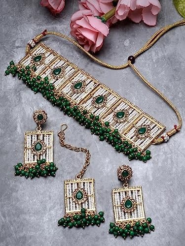 6 reviews for Sukkhi White Beads Gold Plated Choker Necklace Set – Fast Shipping to USA & Canada