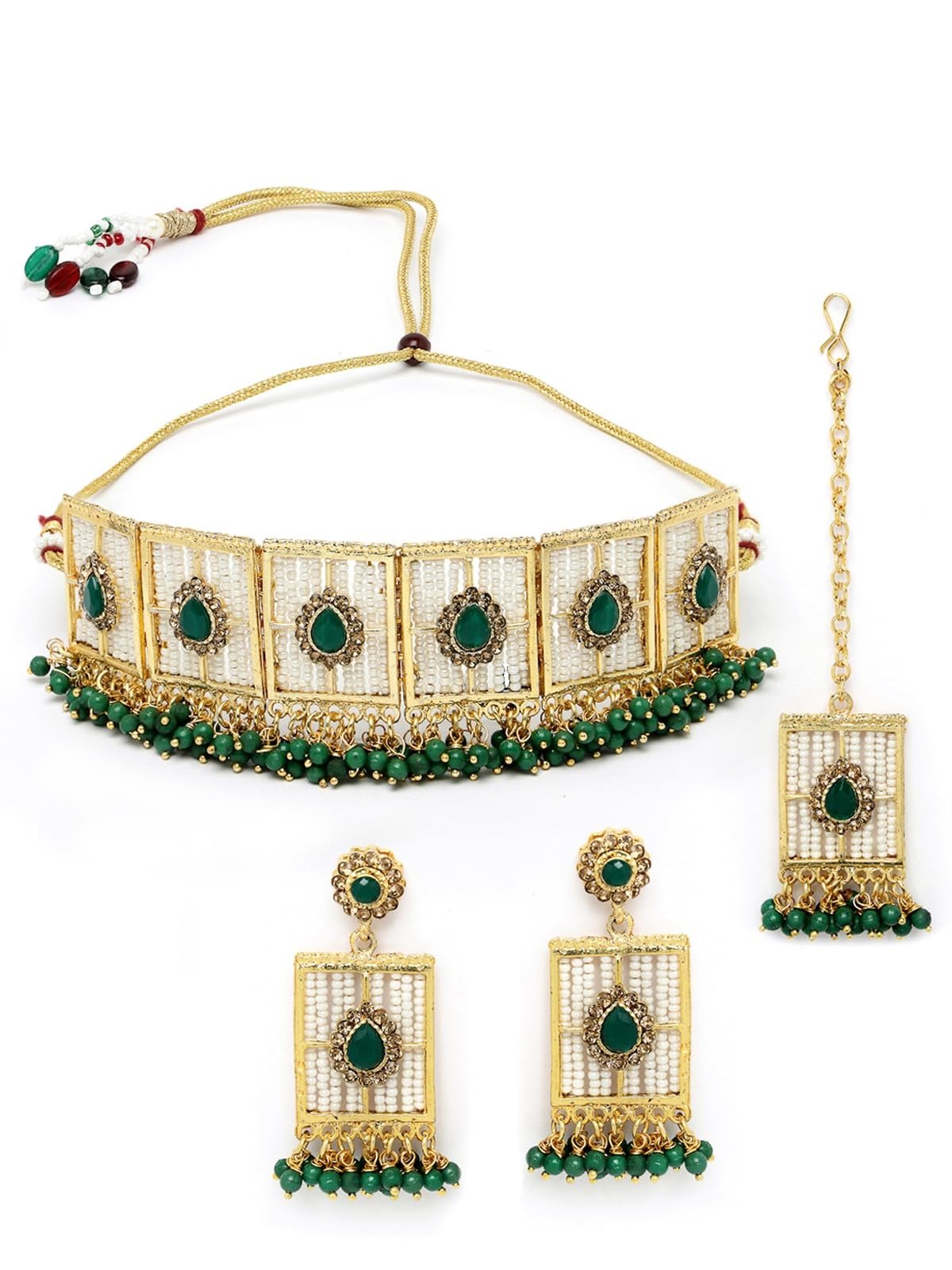 Sukkhi White Beads Gold Plated Choker Necklace Set – Fast Shipping to USA & Canada