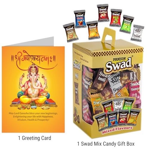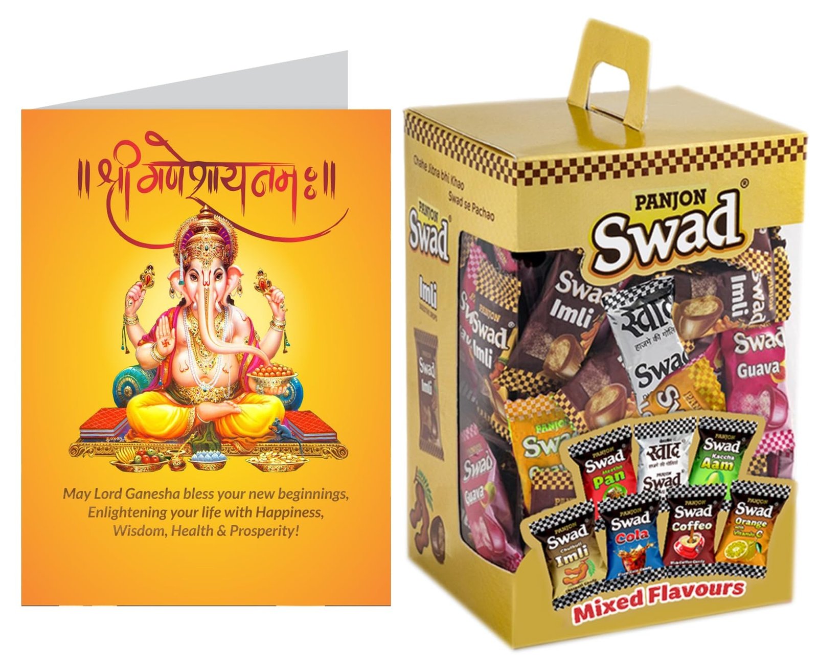 Swad Ganesh Chaturthi Gift with Card (Swad Mixed Candy 125 Gift Box & 1 Greeting card) – Fast Shipping to USA & Canada