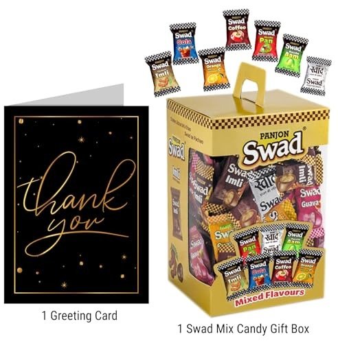 Swad Thank You Gift with Card (Swad Mixed Candy 125 Gift Box & 1 Greeting card) – Fast Shipping to USA & Canada