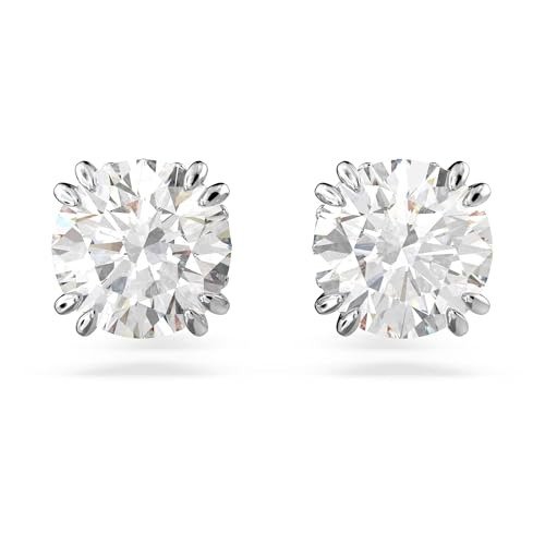 Swarovski Constella Stud Earrings, Round Cut, White, Rhodium Plated For Women – Fast Shipping to USA & Canada