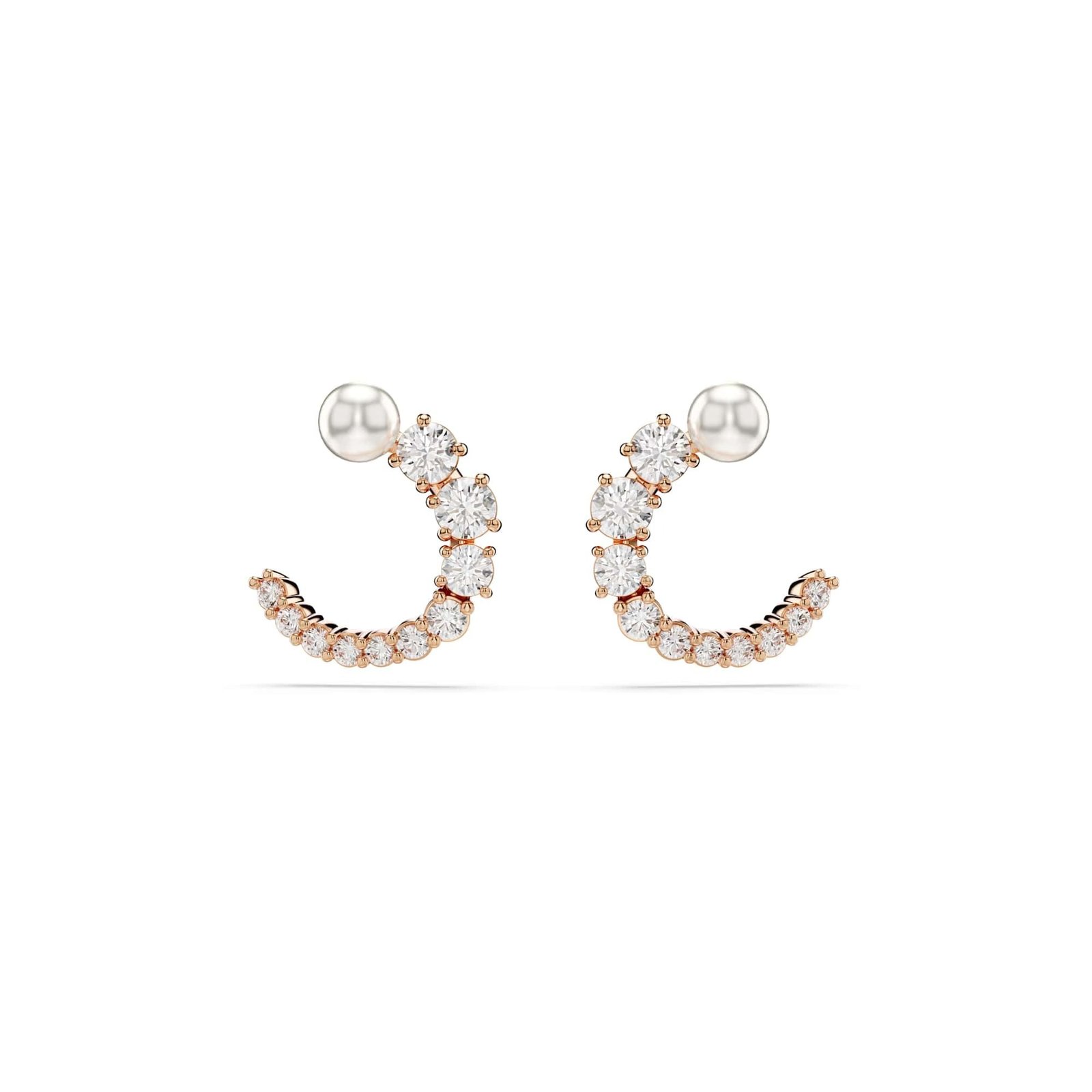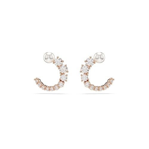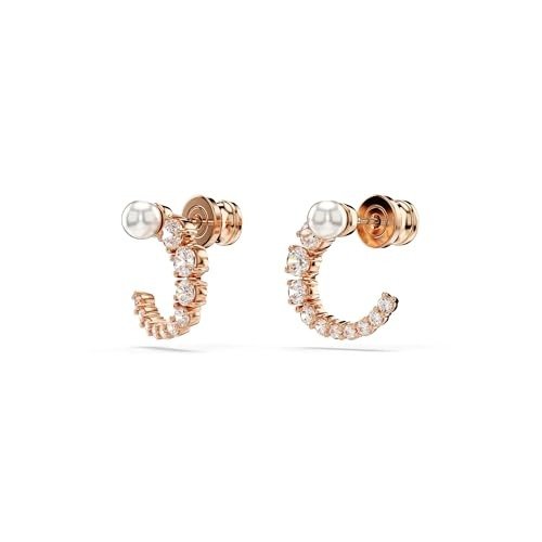 Swarovski Matrix hoop earrings, Crystal pearl, Round cut, White, Rose gold-tone plated – Fast Shipping to USA & Canada