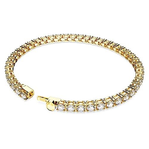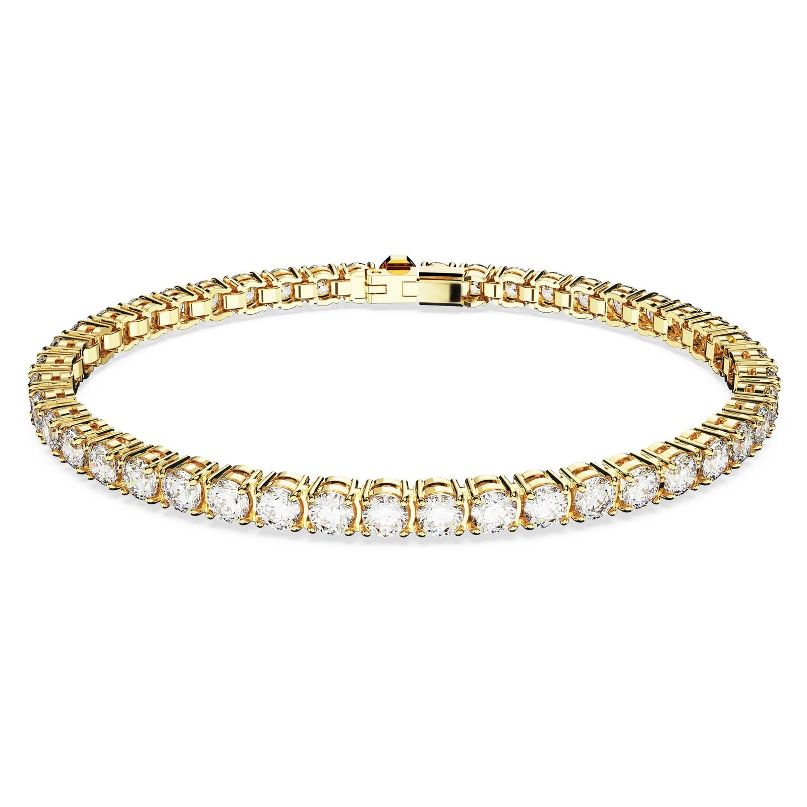 Swarovski Matrix Tennis bracelet, Round cut, White, Gold-tone plated – Fast Shipping to USA & Canada
