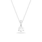 Presenting a breathtaking reimagining of our top-selling Solitaire Pendant, a design that has captivated many and remains a timeless Swarovski favorite. Now more elegant than ever, this rhodium-plated pendant radiates a brilliant shimmer. It serves as an essential accessory, offering the perfect touch of sparkle for any event, effortlessly elevating any ensemble. The pendant is elegantly suspended on a chain.