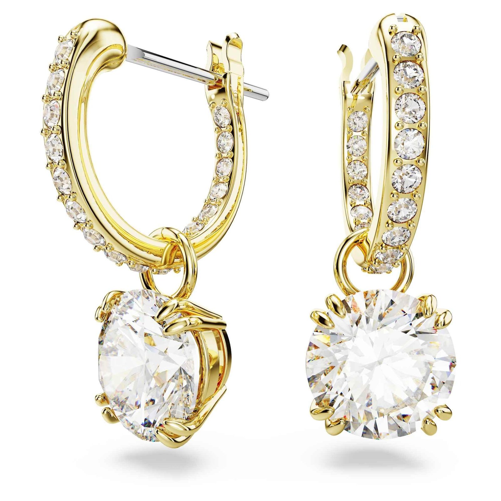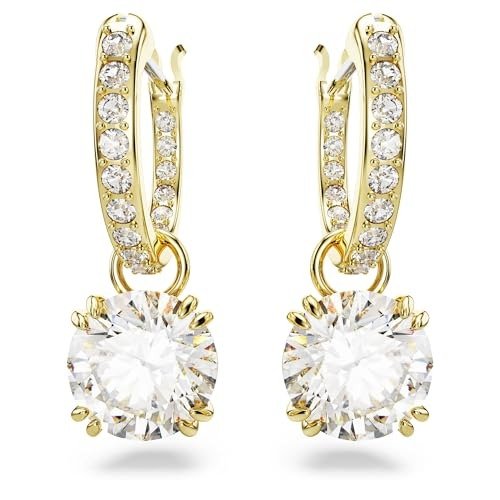 Swarovski Women Constella Drop Earrings, Round Cut, White, Gold-Tone Plated – Fast Shipping to USA & Canada