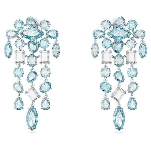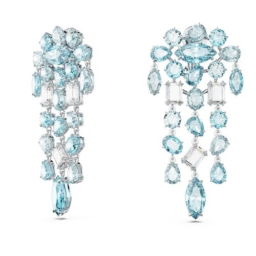 6 reviews for Swarovski Women Gema Clip Earrings, Mixed Cuts, Chandelier, Extra Long, Blue, Rhodium Plated – Fast Shipping to USA & Canada