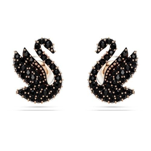 Swarovski Women Iconic Swan Stud Earrings, Swan, Black, Rose Gold-Tone Plated – Fast Shipping to USA & Canada