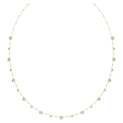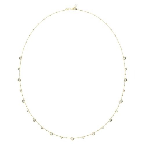 Distinctive design: This elongated jewelry piece is ideal for layering, adding an element of elegance to your ensemble. The design showcases a gold-tone plated chain, embellished with a variety of lustrous metal droplets and sparkling round-cut crystals set in a plush bezel.