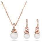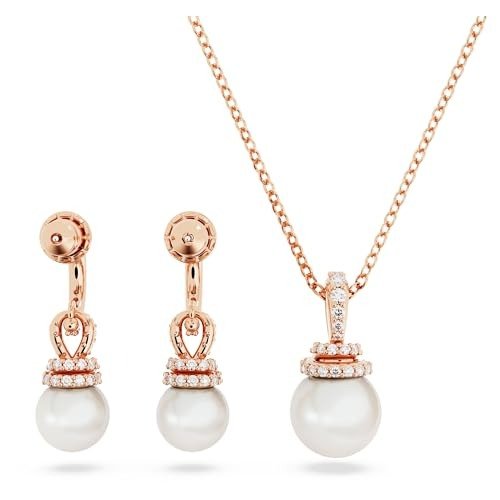 This set of hoop earrings and pendant is an ideal means to infuse your style with enduring elegance. Each piece, plated in rose gold tone, showcases a luminous Swarovski Crystal Pearl adorned with a sparkling pav? of clear Swarovski Zirconia. Striking a balance between classic and contemporary, this essential pearl combination is a must-have for any jewelry collection.