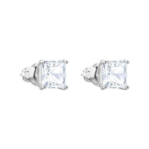 Swarovski Women’s Attract Stud Earrings, Square Cut, White, Rhodium Plated – Fast Shipping to USA & Canada