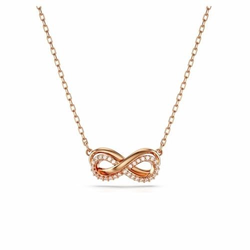 Distinctive Design: Celebrate enduring elegance with this stunning Hyperbola pendant, crafted in the form of an infinity symbol. This rose gold-plated piece of jewelry is suspended from a fine chain, featuring a horizontal design adorned with sparkling clear Swarovski Zirconia.