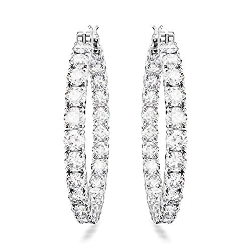 Swarovski Womens Matrix Hoop Earrings, Round Cut, White, Rhodium Plated – Fast Shipping to USA & Canada