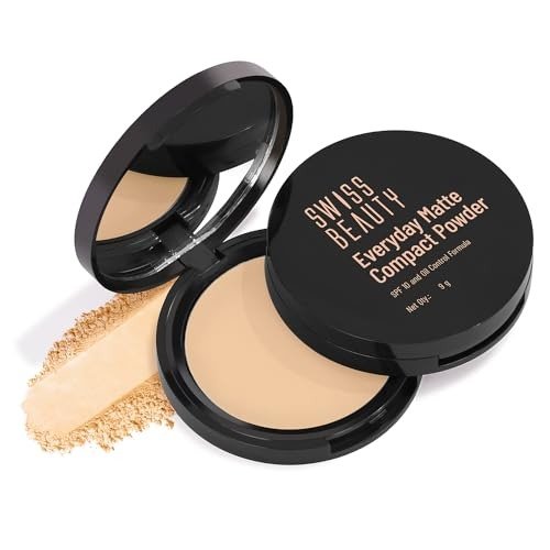 SWISS BEAUTY Everyday Matte Lightweight Compact With Spf 10 For All Skin Types | 12 Hours Of Oil Control | Mattifies Pores And Fine Lines | Comes With Sponge Applicator | Shade- 05 Almond, 9g – Fast Shipping to USA & Canada