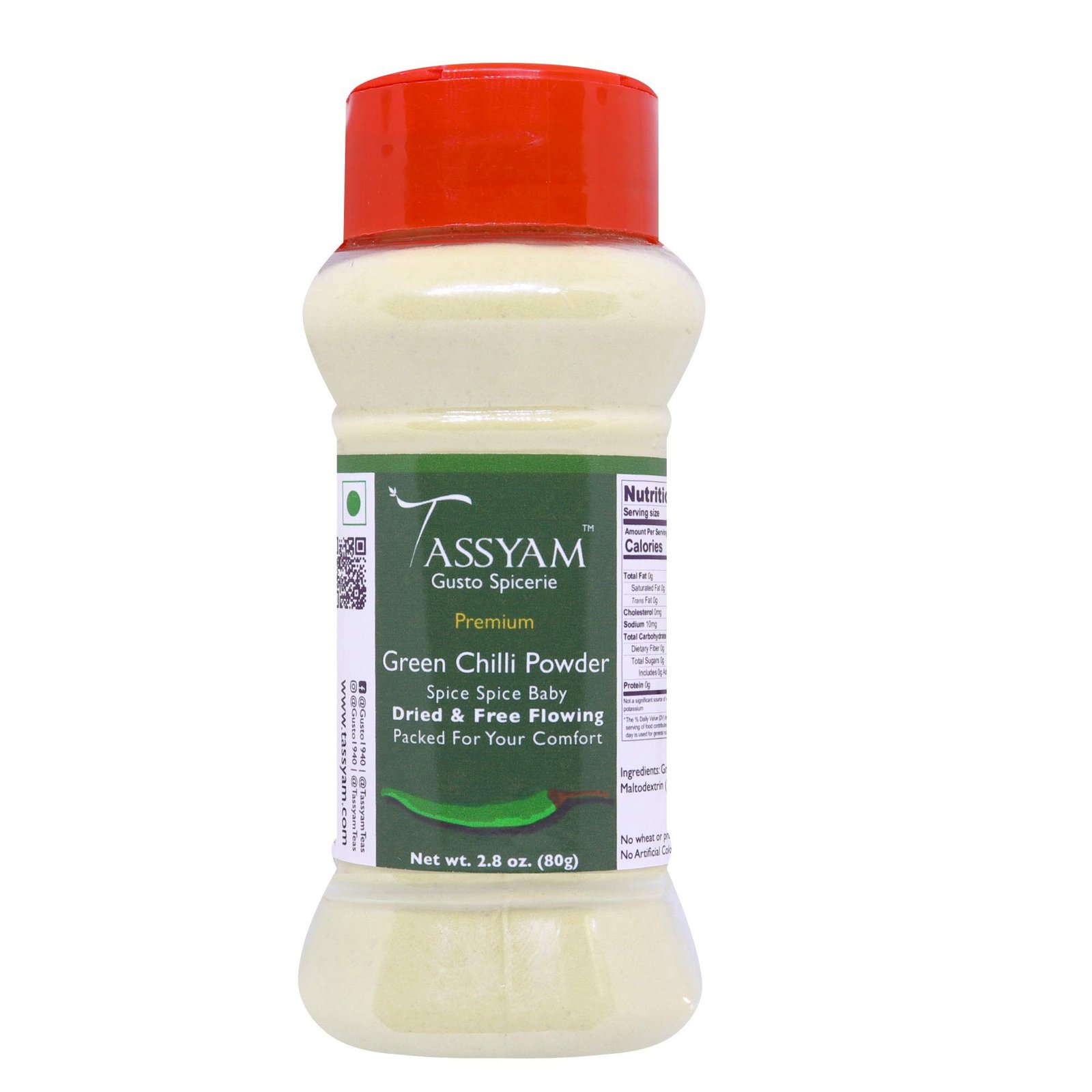 Tassyam Green Chilli Powder 80g | Dispenser Bottle – Fast Shipping to USA & Canada