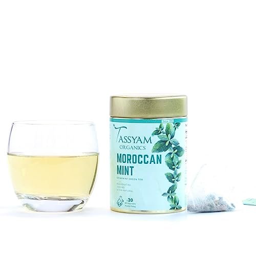 • Tassyam Teawery’s Moroccan Mint Tea Bags offer a refreshing blend of all-natural mint tea, packaged in a set of 20 biodegradable tea bags crafted from plant-based materials, making it a healthier choice. Enjoy a minty green tea conveniently in pyramid-shaped bags.