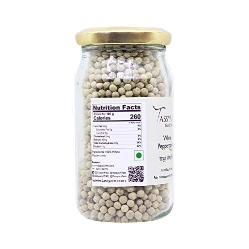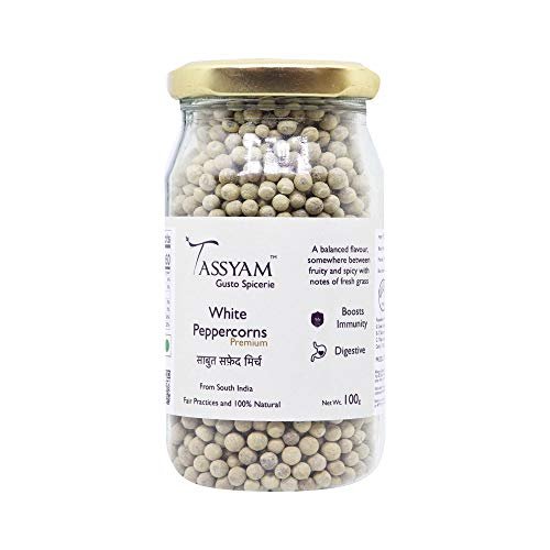 Tassyam White Peppercorns 100 Grams | Safed Mirch Bottle – Fast Shipping to USA & Canada