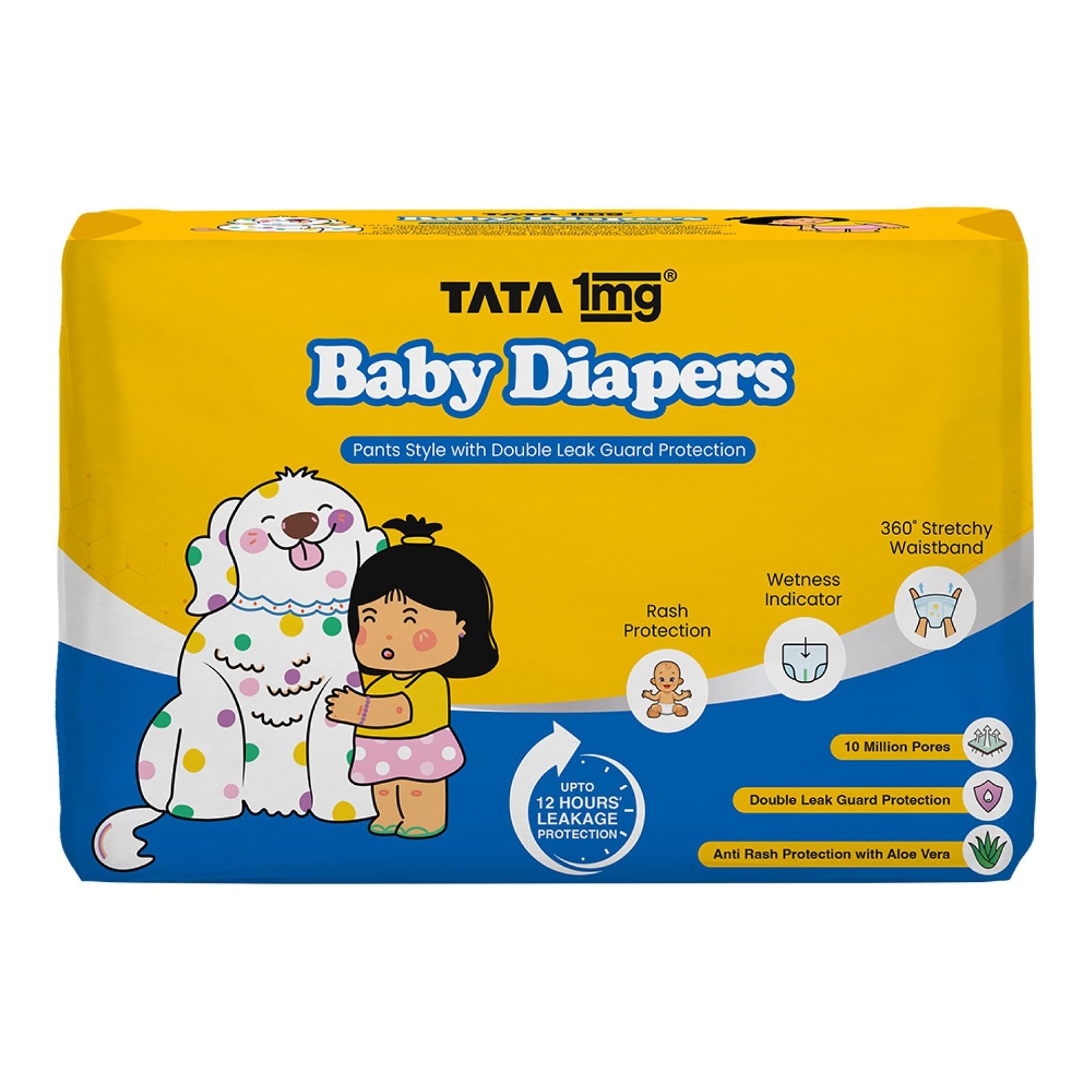 Tata 1mg Baby Diaper Pants are infused with an anti-rash lotion containing Aloe Vera, helping to keep your baby?s sensitive skin soft and free from rashes. Designed in a convenient pant style, these diapers offer comprehensive protection and ensure your little one remains comfortable and dry throughout the day.
