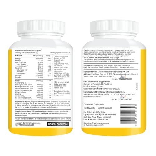 TATA 1mg Krill Oil Omega-3 with CoQ10 – 30 Caps – Fast Shipping to USA & Canada